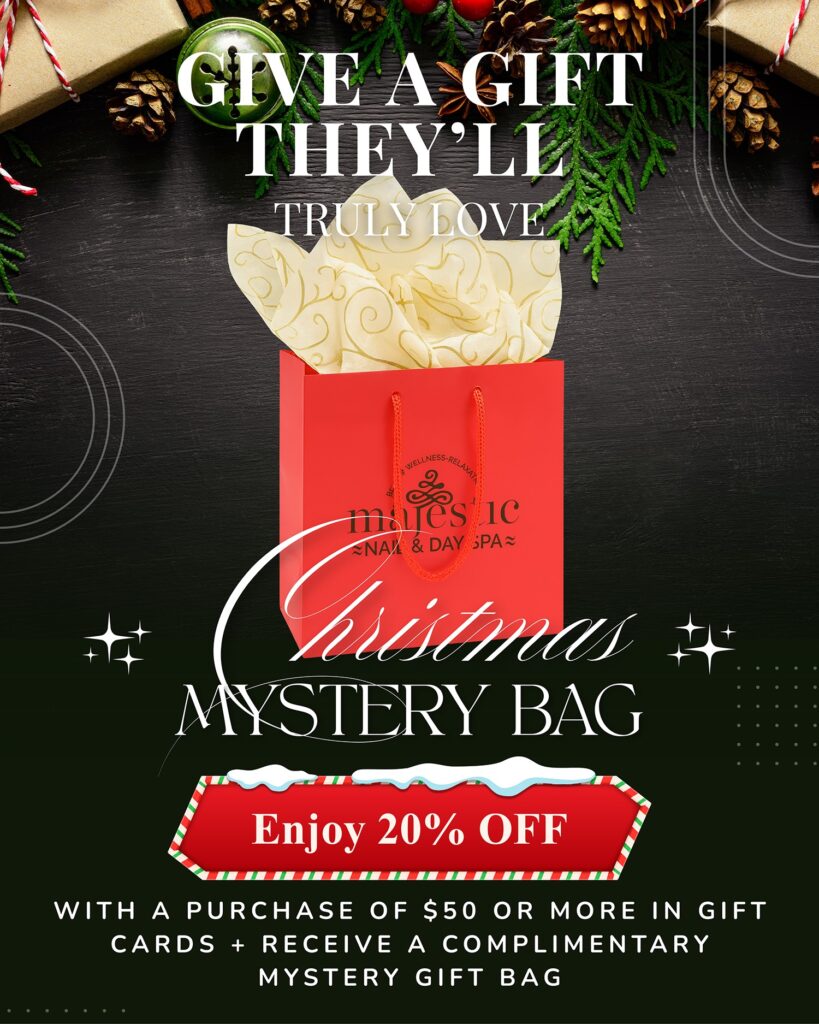 Our Majestic Pedicure includes nail shaping, cuticle care, light callus care, sugar scrub, light oil massage, with regular polish, and is finished with a hot towel.